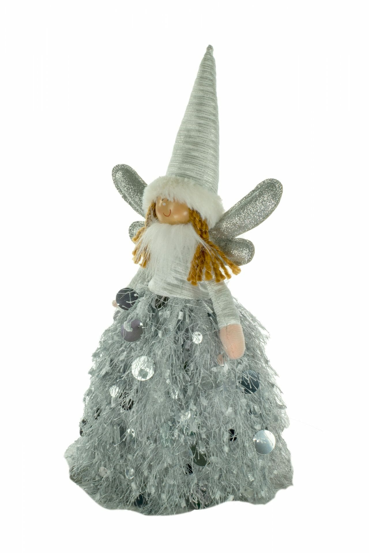 • Description: 12" Gray and Silver Cloth Angel LED Doll with Silver Wings