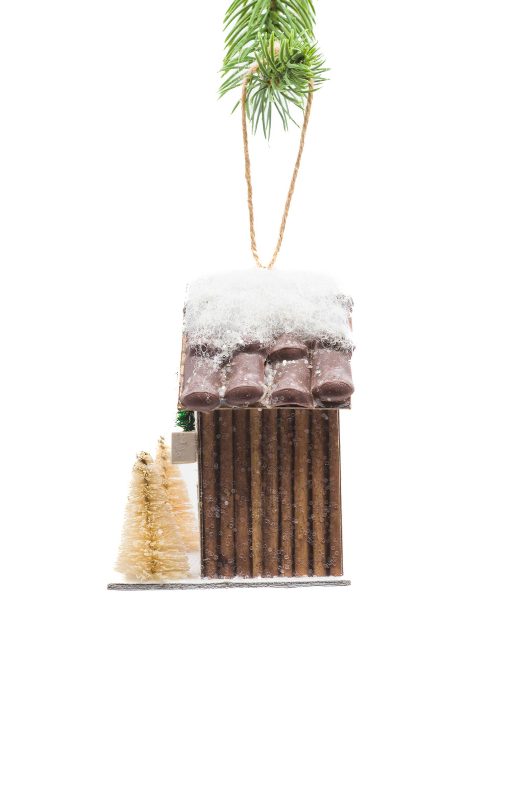 Brown Hanging Barnhouse LED Ornament with Snowcapped Roof
