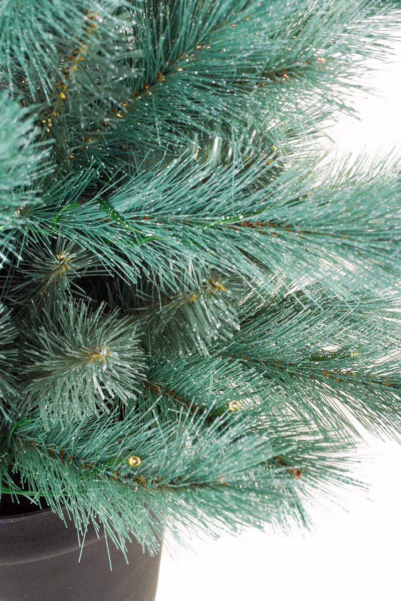 • Description: 36" Sea Green Pvc Spruce Warm White LED Christmas Tree with 98 Tips. and Black Pot Base